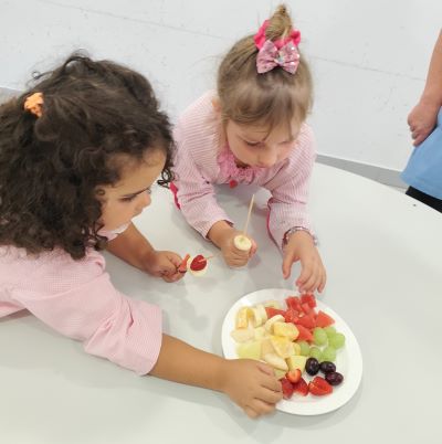 Na semana de 13 a 17 de outubro, em jeito de celebração do Dia Mundial da Alimentação, as nossas crianças do pré-escolar aprenderam a reconhecer sabores, a experimentar novos alimentos e a desenvolver hábitos alimentares saudáveis que pretendemos que os acompanhem ao longo da vida. Foram preparadas saborosas espetadas de fruta, sumos de fruta, kompot de frutos vermelhos e gomas saudáveis. Viveram-se verdadeiros momentos de partilha e intercâmbio de experiências sensoriais. Aprenderam a identificar boas escolhas alimentares e que é necessário acompanhar uma boa alimentação da prática de exercício físico para que sejam crianças felizes, capazes e saudáveis.