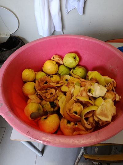 Para a confeção da marmelada, numa atitude sustentável e proactiva, trouxeram frutos autóctones e da época – marmelos.