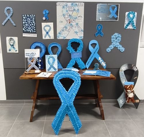 Foi neste contexto que várias turmas foram sensibilizadas para participar na elaboração de Laços Azuis com materiais suscetíveis de serem reciclados, e que constam de uma exposição no átrio da Biblioteca Escolar, que decorrerá até 30 de abril.