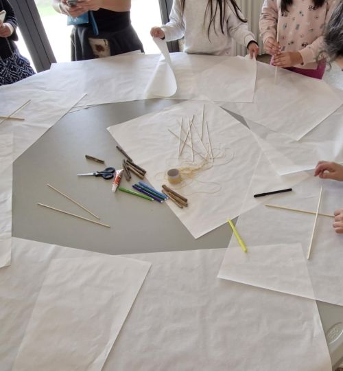 Após o almoço partilhado, os alunos foram divididos em grupos, e desafiados a construir um papagaio de papel, desenvolvendo a cooperação em grupo.