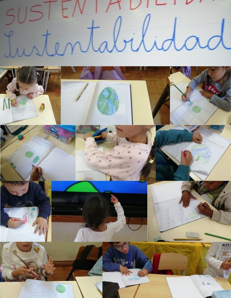 Os alunos visualizaram um vídeo “Maratona de sustentabilidade”. De seguida, refletiram sobre o conceito de sustentabilidade e compreenderam a sua importância para si e para as futuras gerações. Identificaram as regras fundamentais para um Planeta Sustentável desenhando livremente sobre o tema.